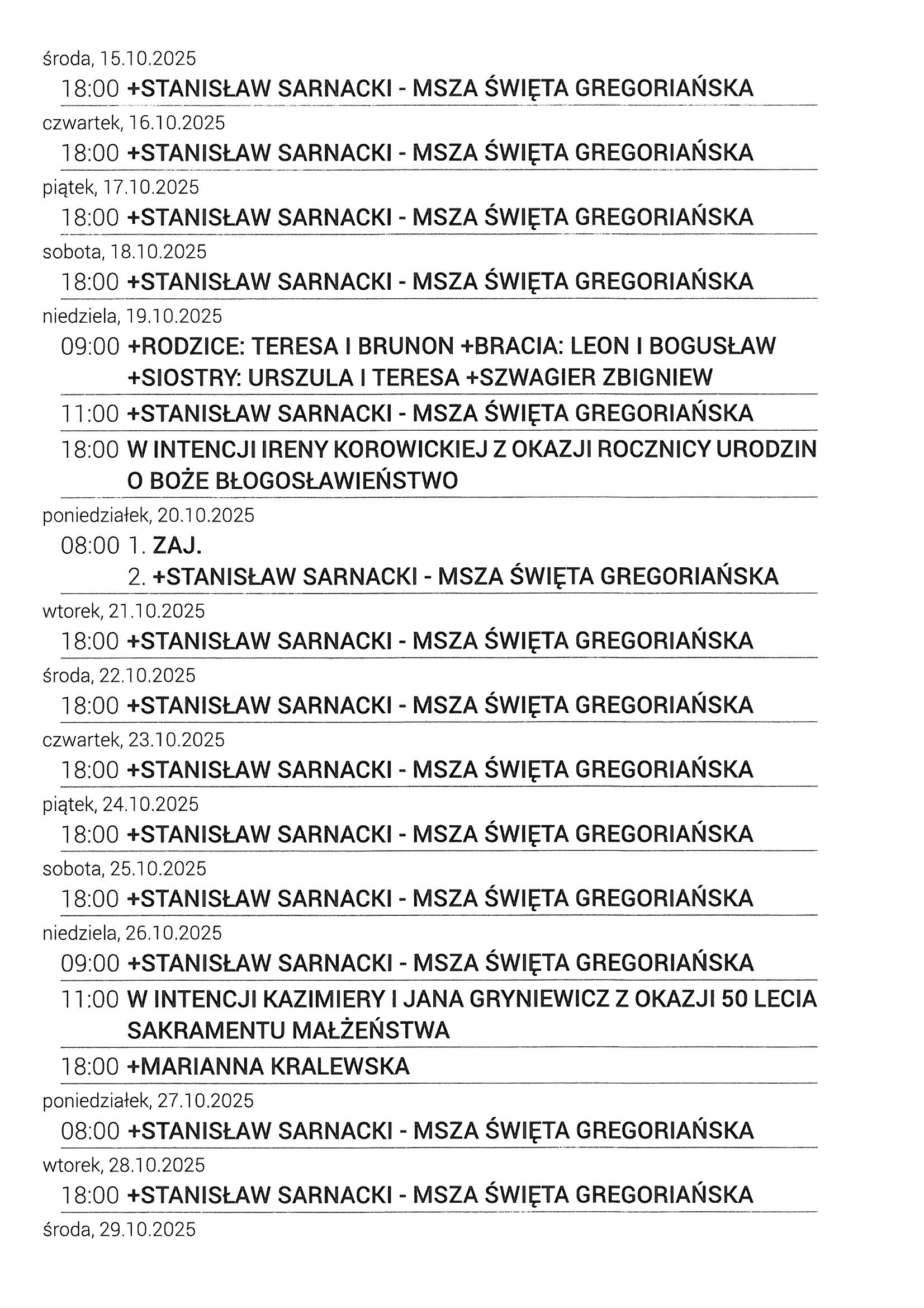 Intencje Mszalne